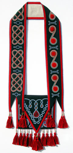 The other single most important event was a grant enabling me to go to Washington, DC, to study the Southeastern Woodlands beadwork in the Smithsonian Institution collection. That was just a couple of months ago and it will probably take years to realize how deeply that opportunity affected me. It was amazing to see and feel and even smell those wonderful old pieces of beadwork. It has already influenced my choice of stitch techniques, my choice of fabric color, and has sent me on a quest to find one certain color of beads that must have been common back then.